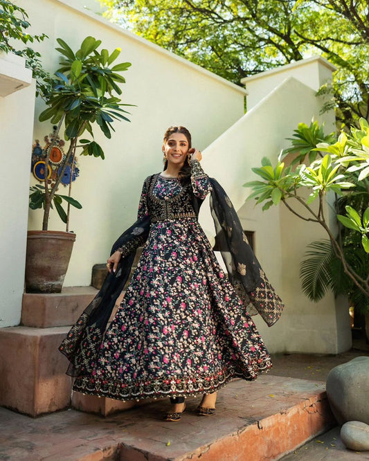 Aroob Jatoi - Embroidered Navy Maxi, Lehenga with Dupatta | 55% OFF