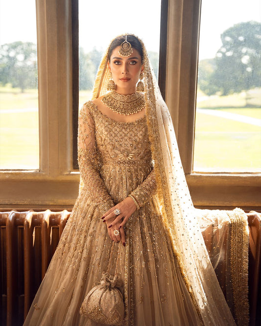 Ayeza Khan Bridal Golden Gown - Luxury Wedding Dress | 60% OFF