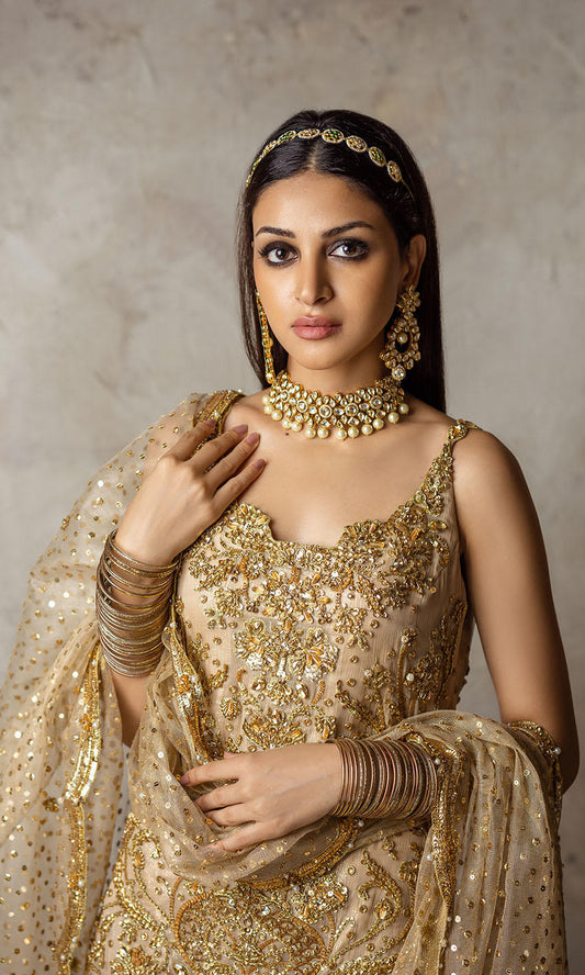 Anmol Baloch - Embellished Golden Ghagra Shirt 3pc | 70% OFF