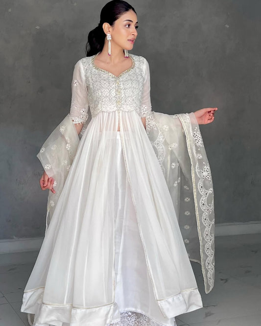 Anmol Baloch - White Maxi with Lehenga | 70% OFF