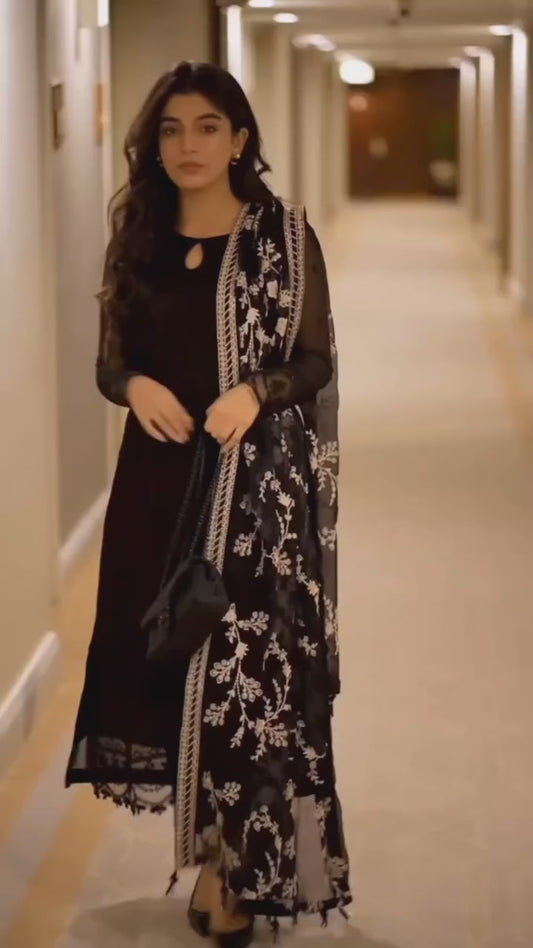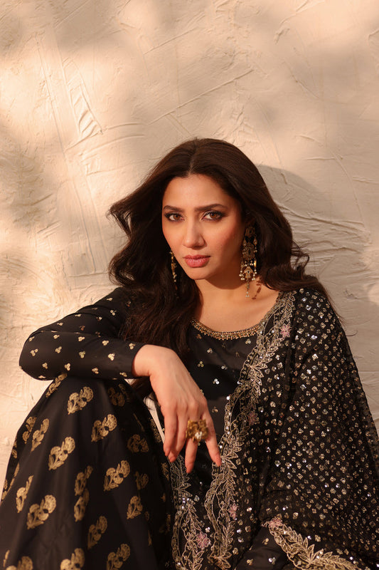 Mahira Khan Black Amani Luxury 3pc dress | Sharara | 50% OFF | Cash On Delivery