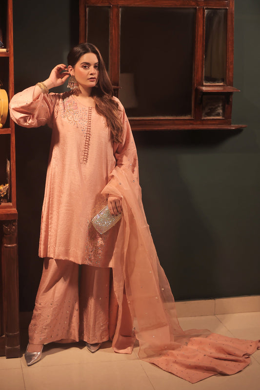 Minal Khan Pastel Pink Shirt, Trouser and Dupatta set | COD | 30% OFF | Reshmi Shirt