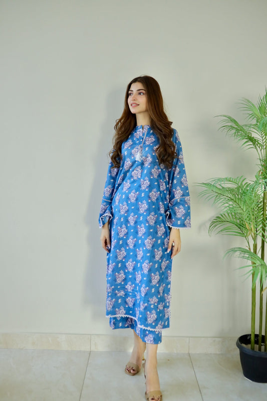 Kinza Hashmi - Blue shade Shirtand Trouser - COD | 30% OFF