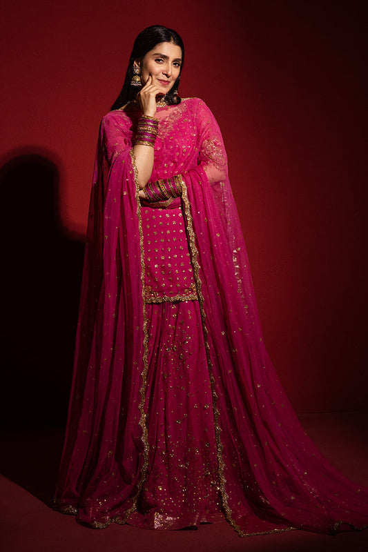 Aima Baig - Beetroot Shirt, Farshi Shalwar with Dupatta - COD | 50% OFF