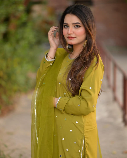 Olive Shirt, Trouser with dupatta - COD | 40% OFF