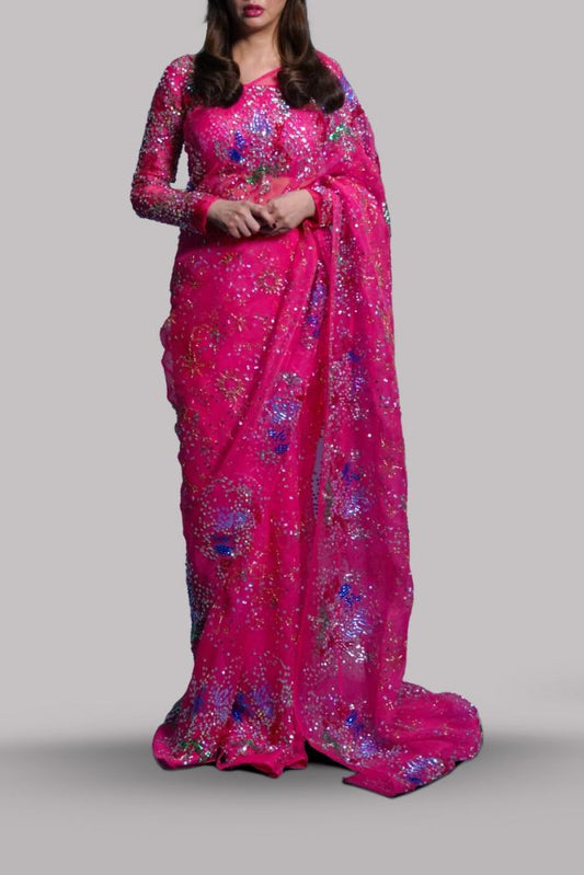 MAHIRA KHAN - CAMELLIA PINK EMBELLISHED ORGANZA Saree | 70% OFF | Reshmi Shirt | Reshmi Sari