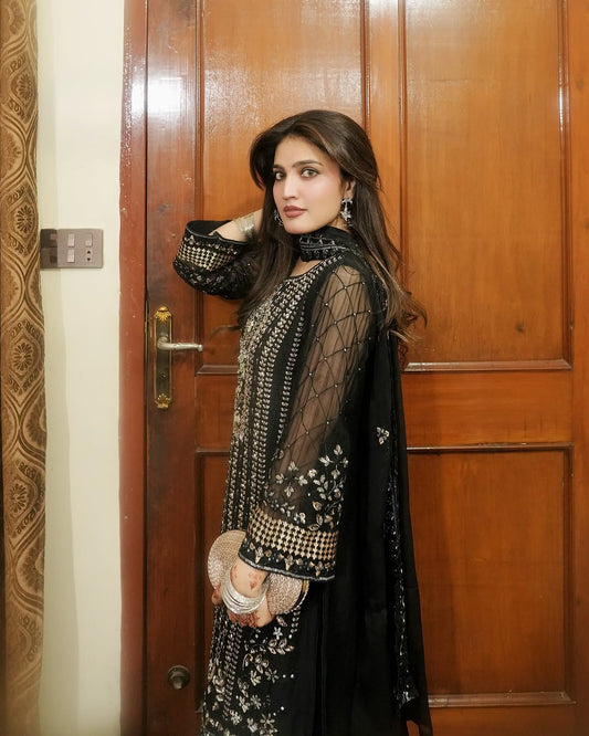 Sajal Ali - Roseka Shirt, Trouser with Dupatta - COD | 40% OFF