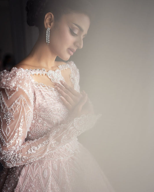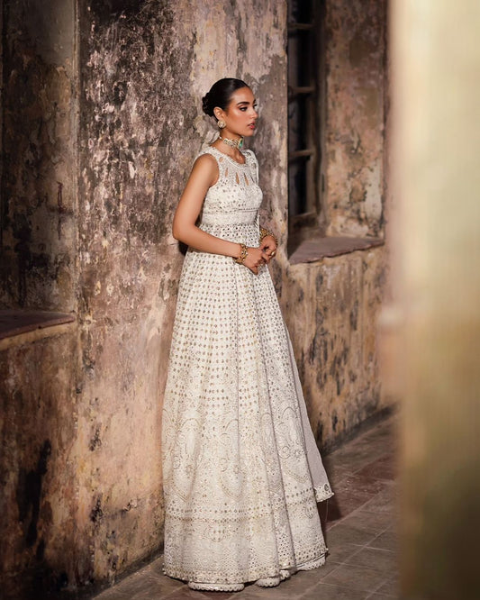 Iqra Aziz - Ivory White Gown, Trouser and Dupatta set | 30% OFF