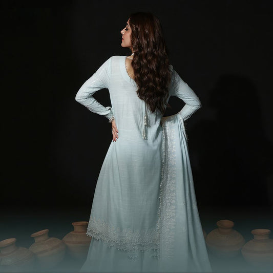 Maya Ali - Light Blue Shirt, Flapper and Dupatta Outfit | 50% OFF