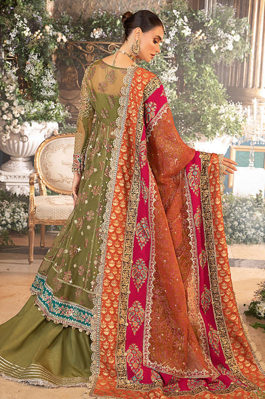 Greenish Embroidered Organza Long Shirt, Flapper and Dupatta set | 42% OFF