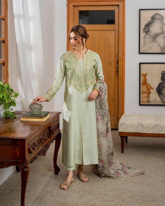 Kubra Khan - Mint Shirt, Trouser and Dupatta set - COD | 30% OFF