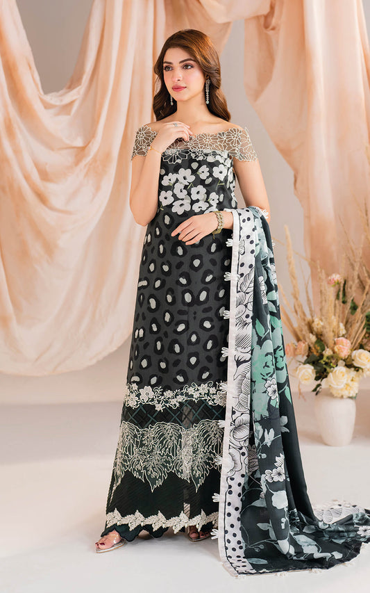 Kinza Hashmi - Grey floral viscose Shirt, Trouser and dupatta set | 50% OFF