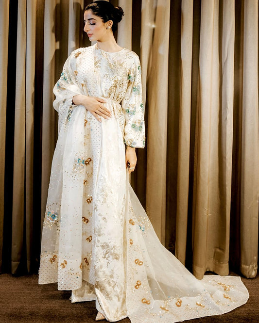 Mawra Hocane - White Sawan Raw Silk Suit | 60% OFF
