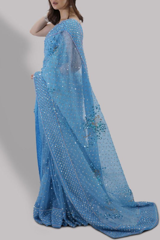 Hania Aamir - Bonnie Blue Embellished Organza Saree | 70% OFF