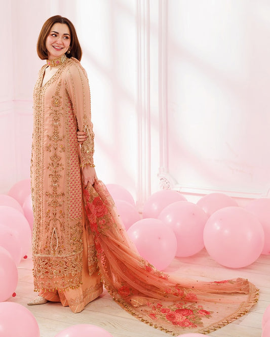 Hania Aamir - Peach Shirt, Trouser with Dupatta | 50% OFF