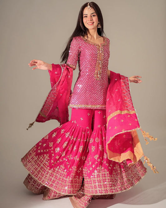 Komal Meer - Gulabi Shirt, Ghagra and Dupatta set | 50% OFF
