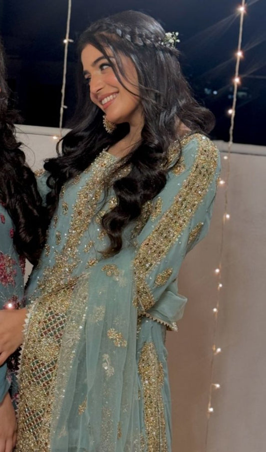 Kubra Khan - Mint Shirt, Trouser and Dupatta set - COD | 30% OFF