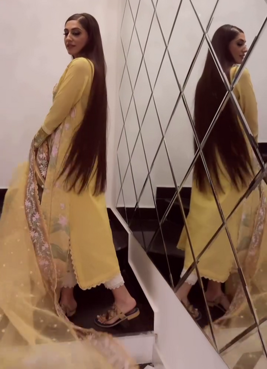 Minal Khan - Tur Shirt, Trouser with Dupatta | 50% OFF | Reshmi Shirt - COD