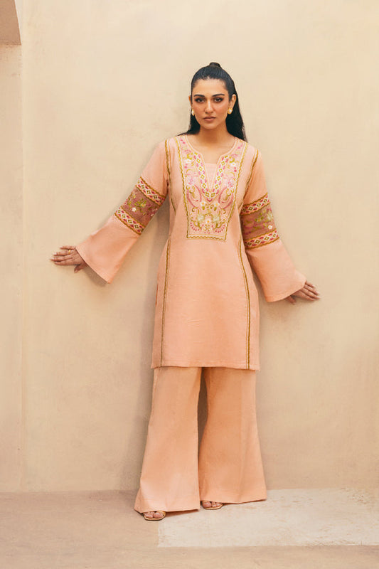 Sarah Khan - Embellished Peach Shirt with Trouser - COD | 20% OFF