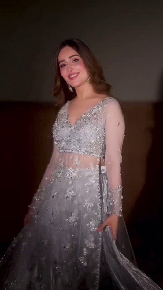 Ayeza Khan x Laiba Khan Black Floral Lehenga or Maxi with Dupatta | 40% OFF | Cash on Delivery