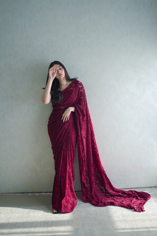 Durefishan Saleem Maroon Saree Stitched | 40% OFF | COD