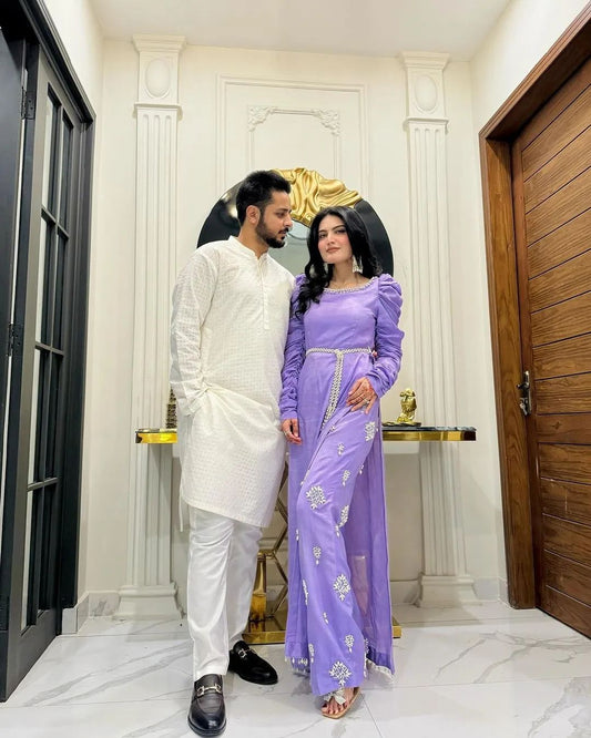 Iqra Kanwal -Embellished Purple Long Top and Trouser | 50% OFF