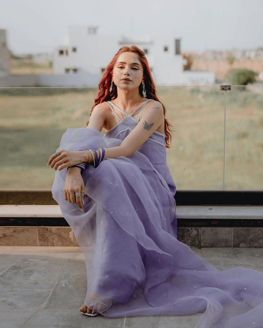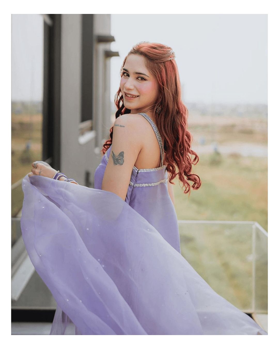 The outfit features a delicate pale pink long shirt paired matching straight pants, The shirt consists of a beautiful pleated back to add drama, complemented by a flowing tie and dye dupatta in shades of pink, creating an ethereal and elegant look.