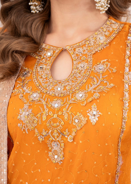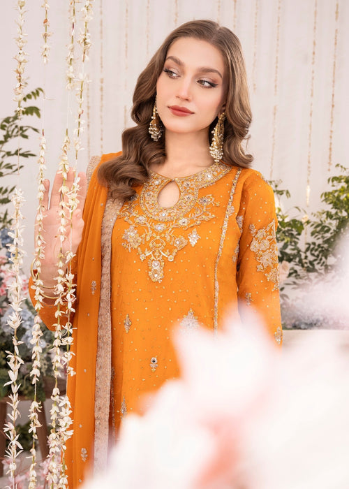 Additional Description: Luxury chiffon embroidered and hand embellished 3pc suit