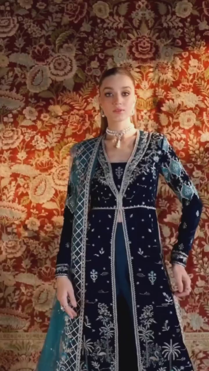Alishba Abbasi - Liyana Velvet Long Shirt, Trouser with Dupatta | 40% OFF