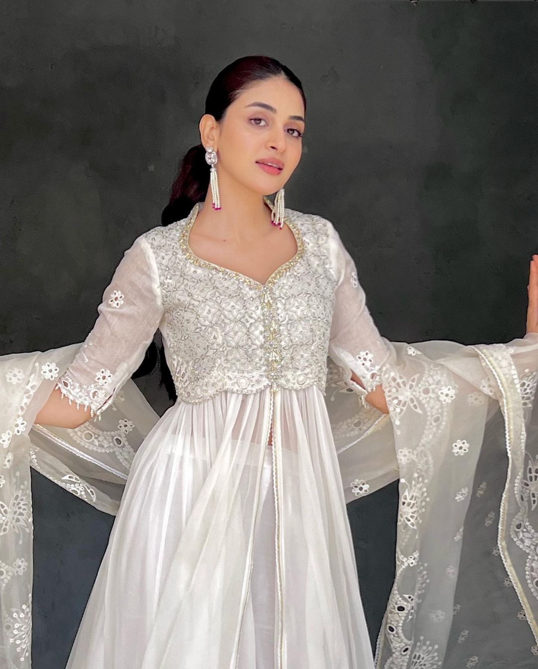 Anmol Baloch - White Maxi with Lehenga | 70% OFF