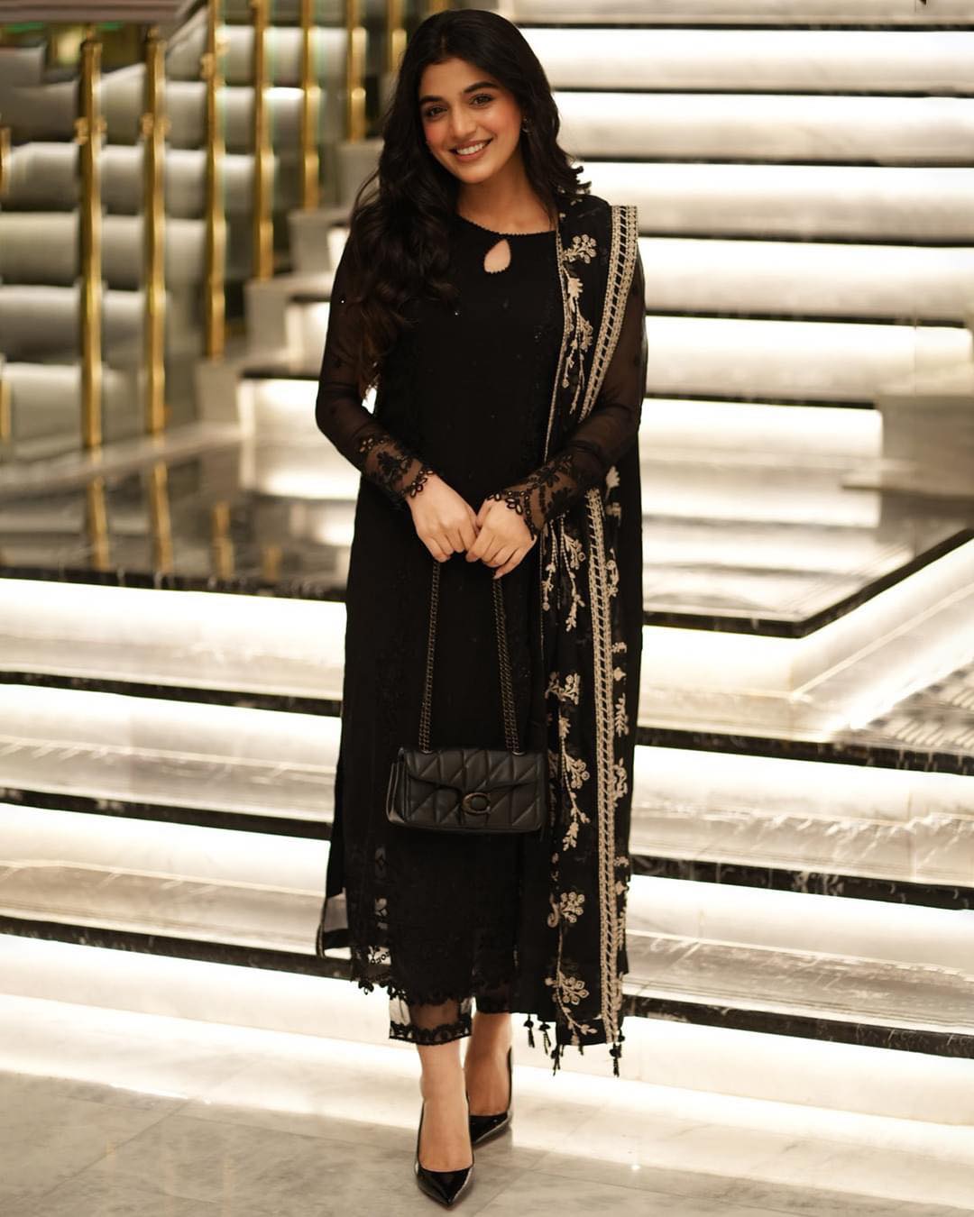 Laiba Khan Starry Black Bliss Shirt, Trouser and Dupatta set | 40% OFF | COD