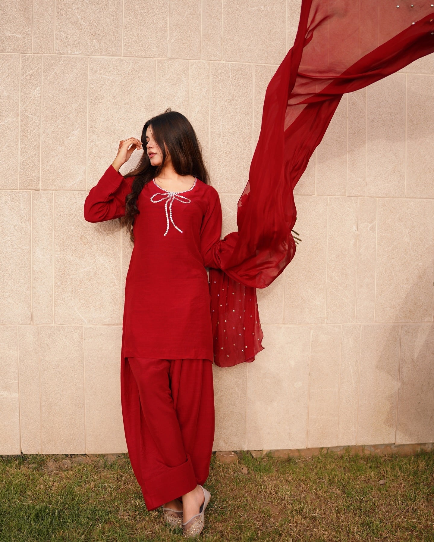 Laraib Malik - Miyani Shirt, Farshi Shalwar with Dupatta - COD | 50% OFF | Reshmi shirt