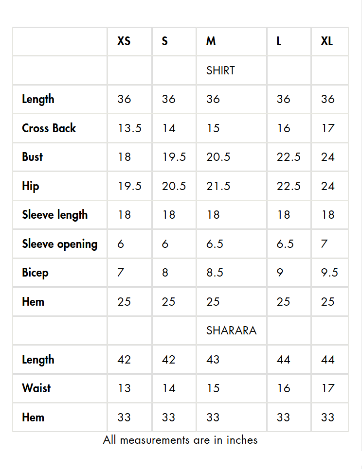 Paired with block printed Egyptian cotton sharara having tilla and sequin borders at hem.