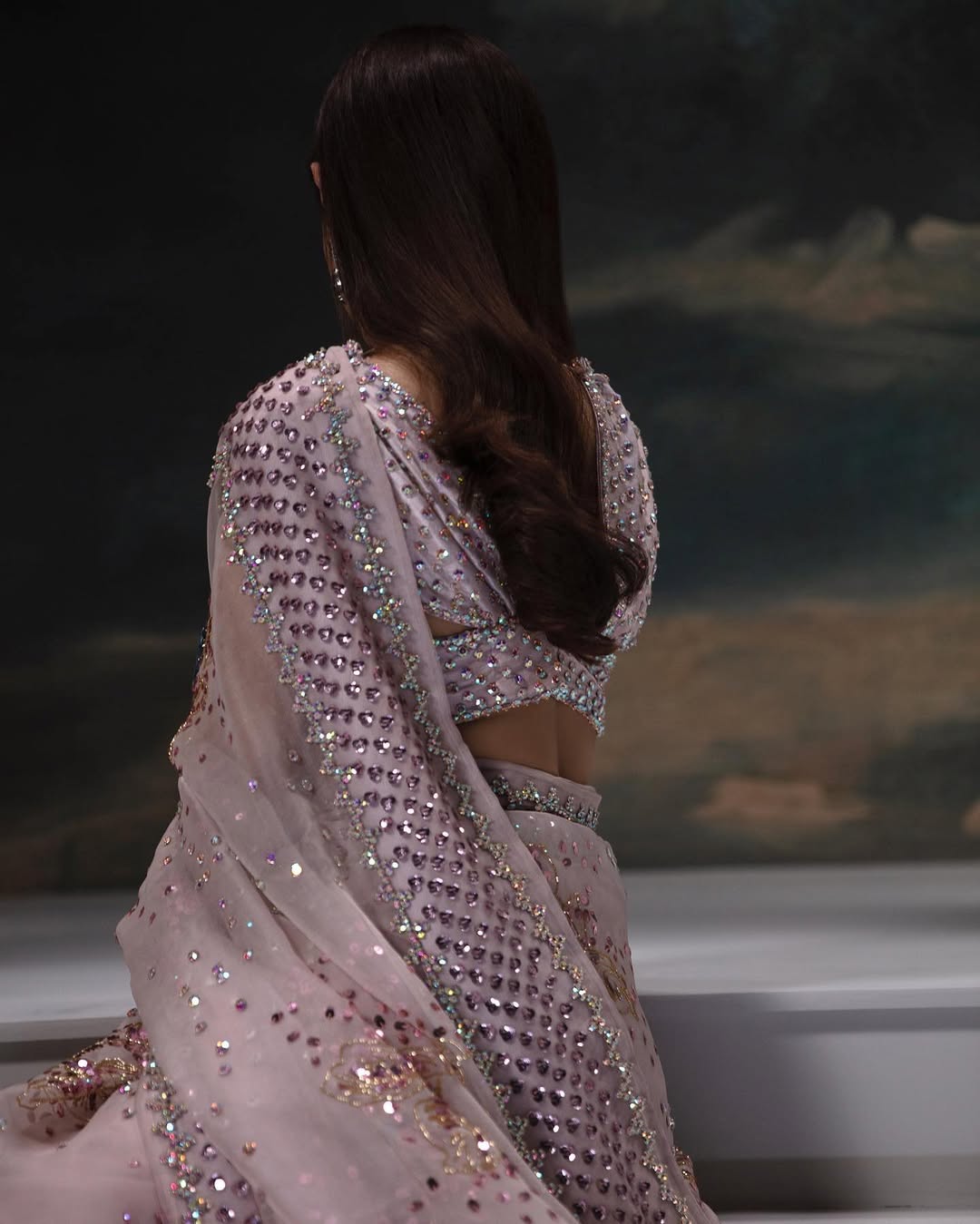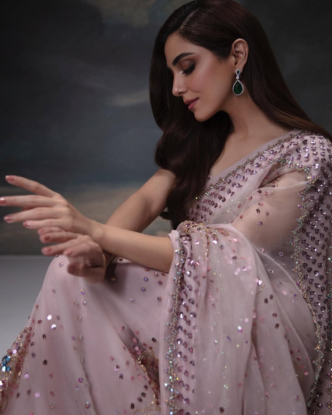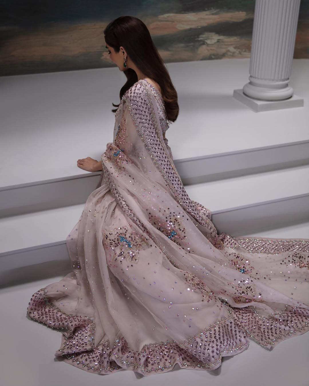 Maya Ali Peach Blush Embellished Organza Saree | 55% OFF