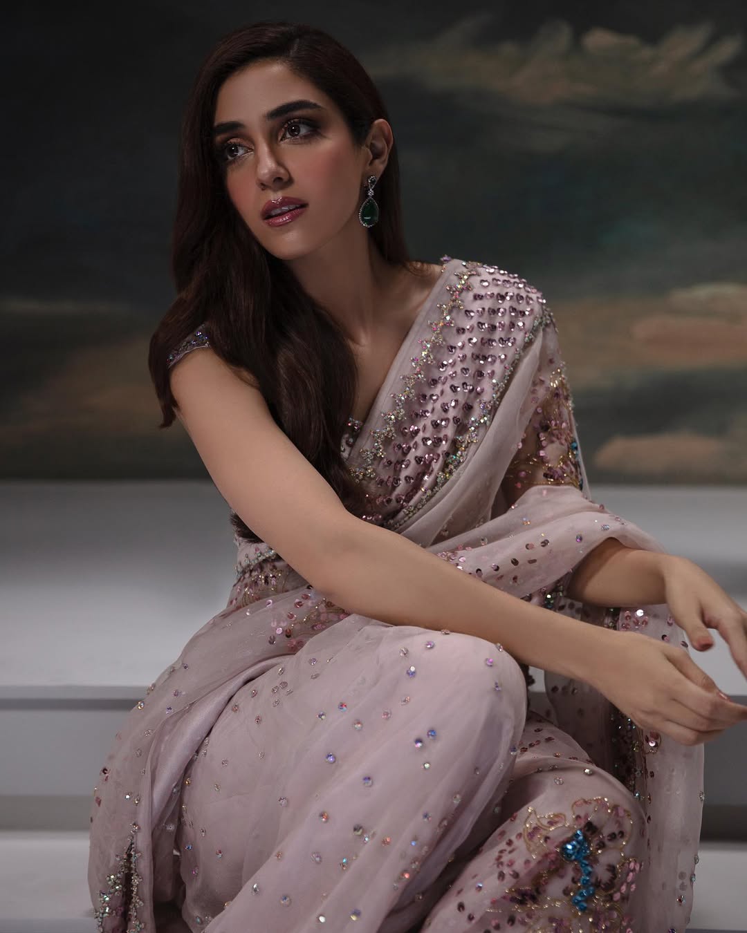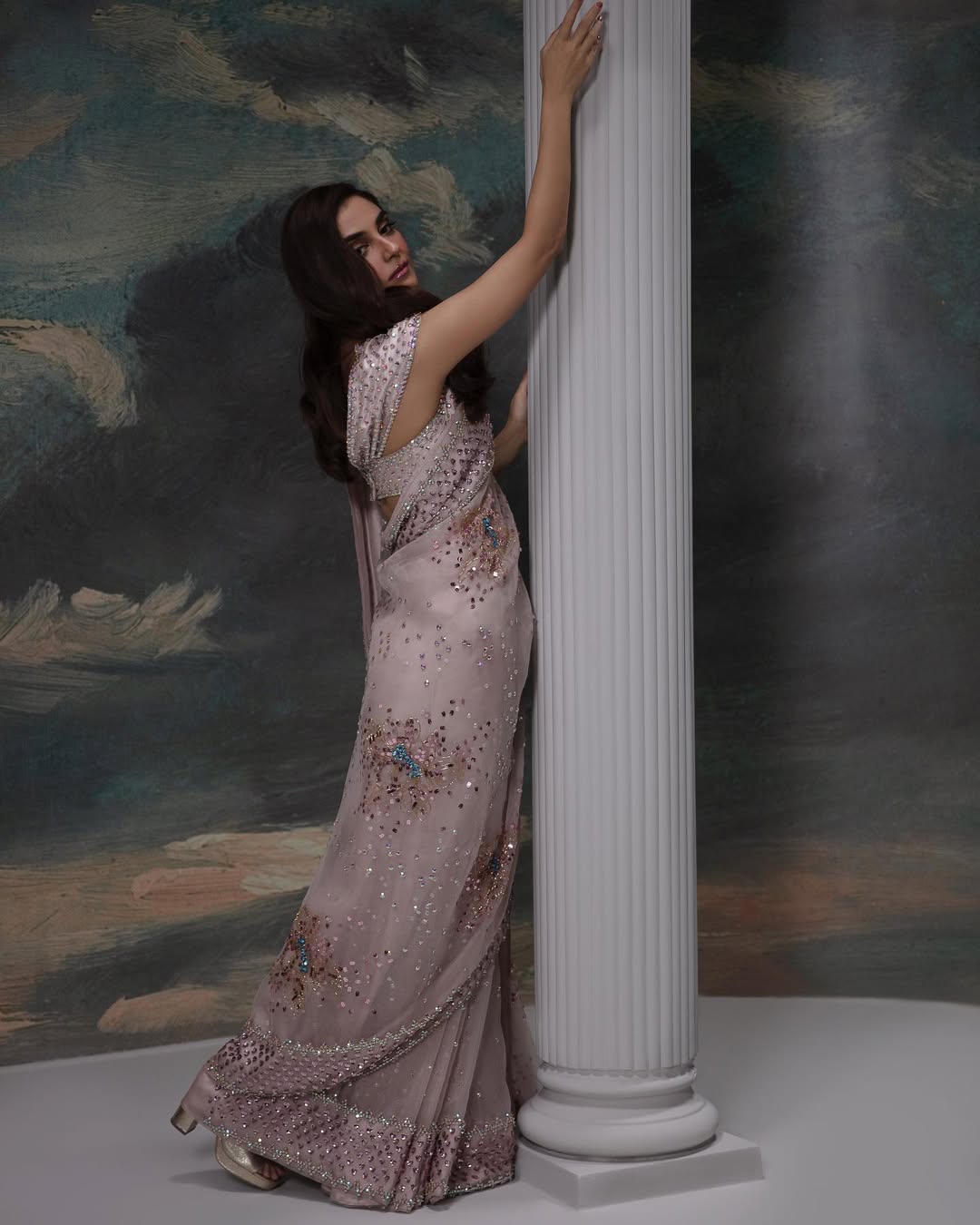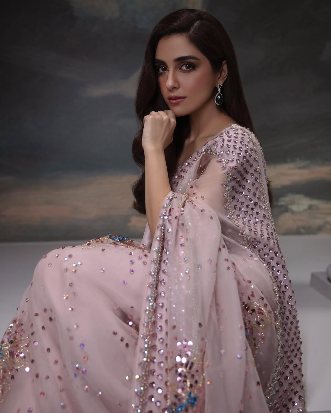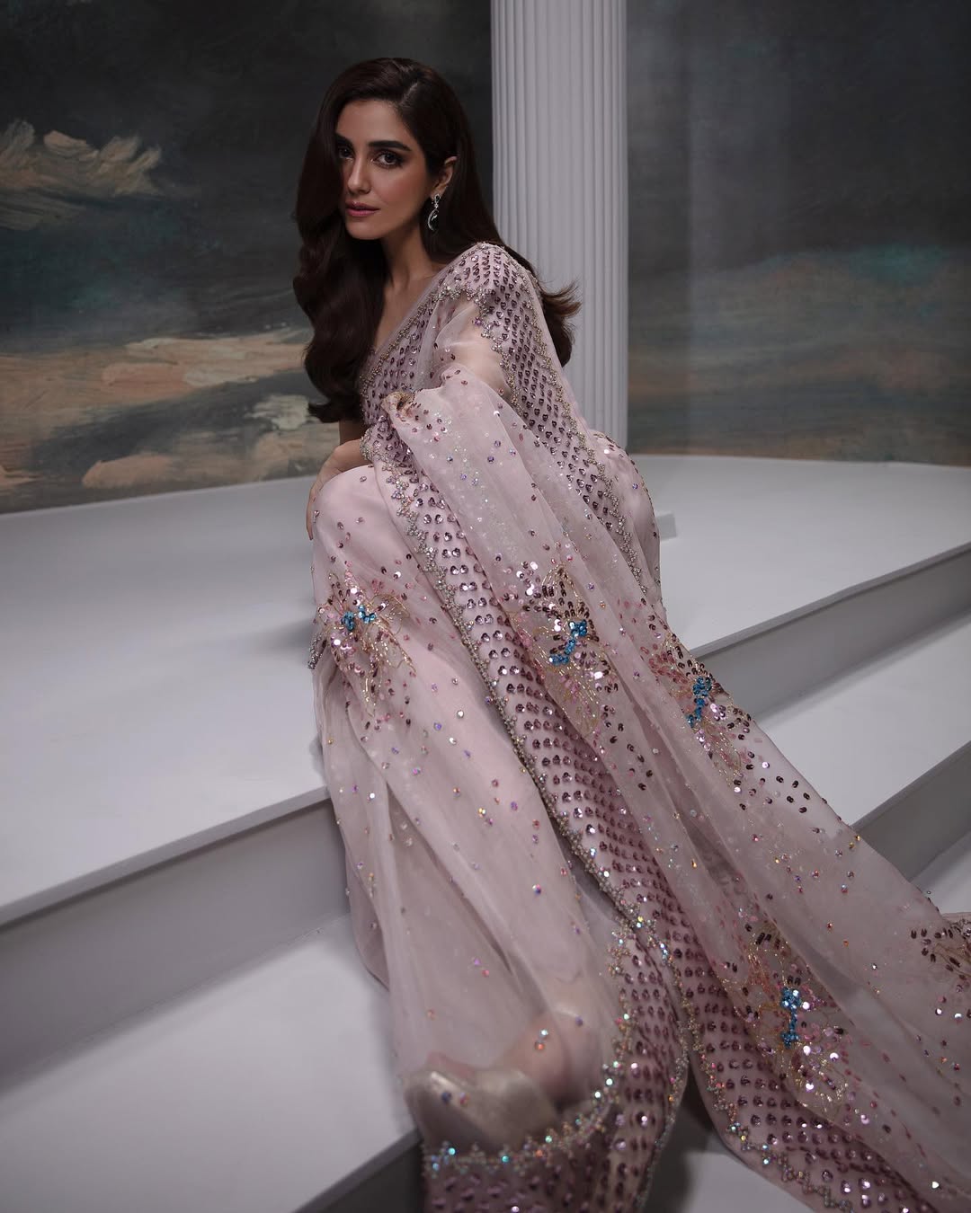 Maya Ali Peach Blush Embellished Organza Saree | 55% OFF